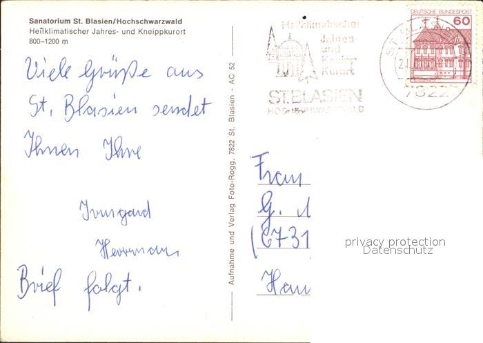 72105716 alte Postkarte St Blasien Sanatorium postalisch gelaufen Erhaltung siehe scans KatCode: 11110008337097