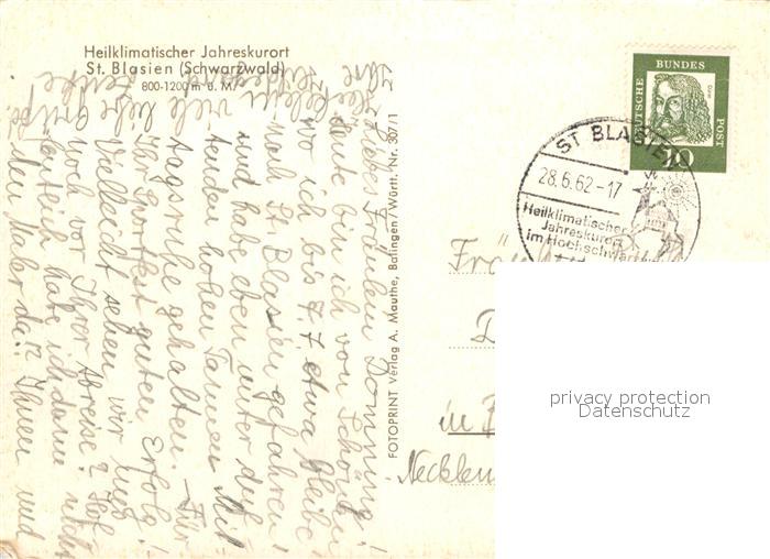 73012201 alte Postkarte St Blasien Sankt Blasius postalisch gelaufen Erhaltung siehe scans [KathaD81] KatCode: 11110008337097