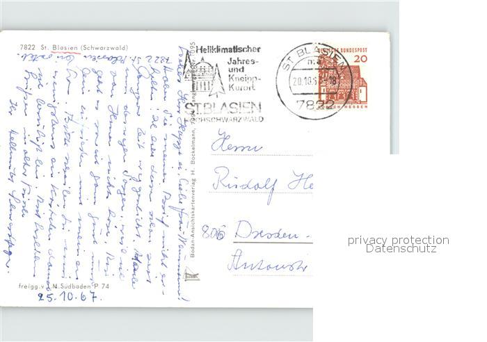 72413831 alte Postkarte St Blasien Schwarzwald Fliegeraufnahme postalisch gelaufen Erhaltung siehe scans KatCode: 11110008337097