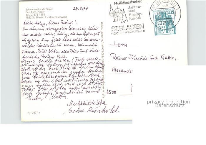 alte Postkarte St Blasien SchwarzwaldCafe Pieper postalisch gelaufen Erhaltung siehe scans