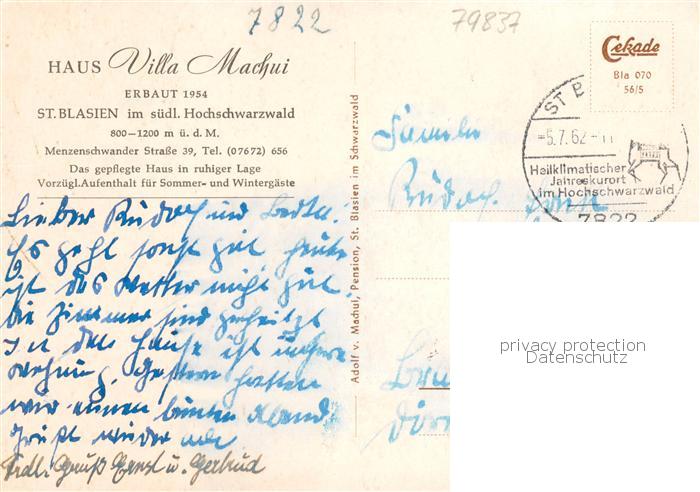 73865166 alte Postkarte St Blasien Villa Machui Terrasse Panorama postalisch gelaufen Erhaltung siehe scans [WerneD78] KatCode: 11110008337097