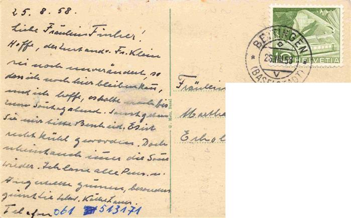 13974789 alte Postkarte St Chrischona Bettingen Riehen BS Blick zur Kirche postalisch gelaufen Erhaltung siehe scans [FriedD77] KatCode: 11470320430336
