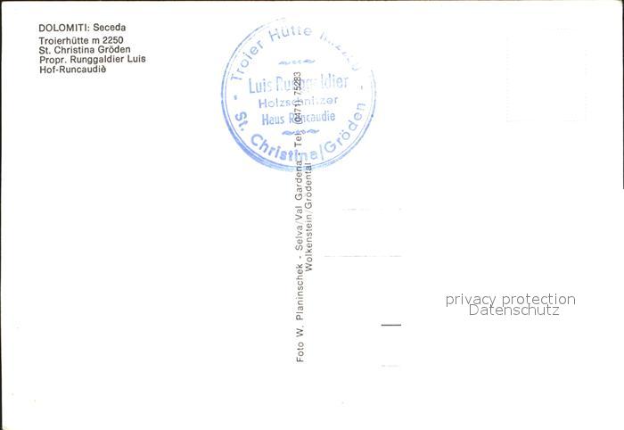 St Christina Troierhuette Dolomiten postalisch nicht gelaufen Erhaltung siehe scans