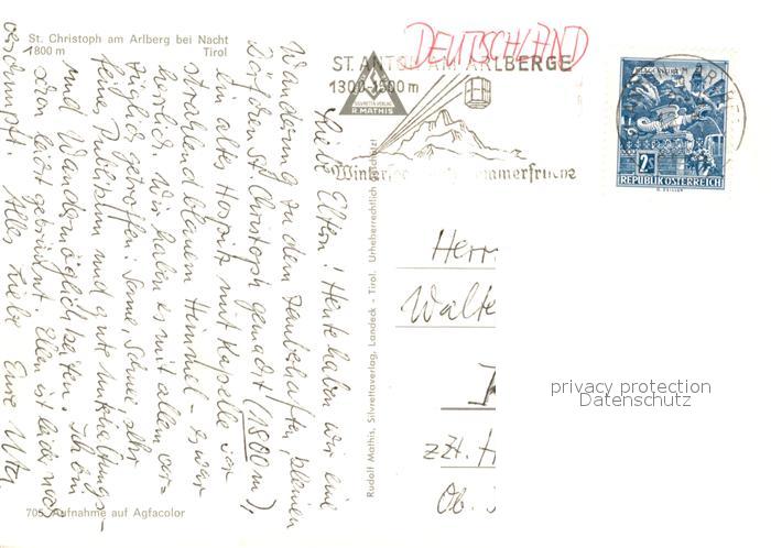 73155780 alte Postkarte St Christoph Arlberg bei Nacht postalisch gelaufen Erhaltung siehe scans [WerneD78] KatCode: 11390334070621