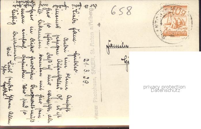 71541170 alte Postkarte St Christoph Arlberg Gasthof Hospiz Wintersportplatz postalisch gelaufen Erhaltung siehe scans KatCode: 11390334070621