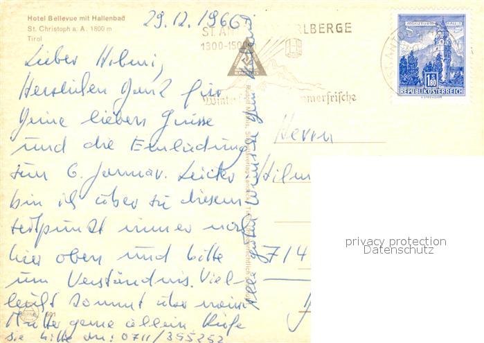 13317631 alte Postkarte St Christoph Arlberg Hotel Bellevue mit Hallenbad postalisch gelaufen Erhaltung siehe scans [WerneD78] KatCode: 11390334070621