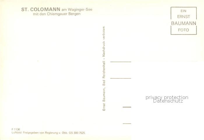 73766305 St Colomann Fliegeraufnahme Waginger-See m. d. Chiemgauer Bergen postalisch nicht gelaufen Erhaltung siehe scans [LiesaD40] KatCode: 11110009373167