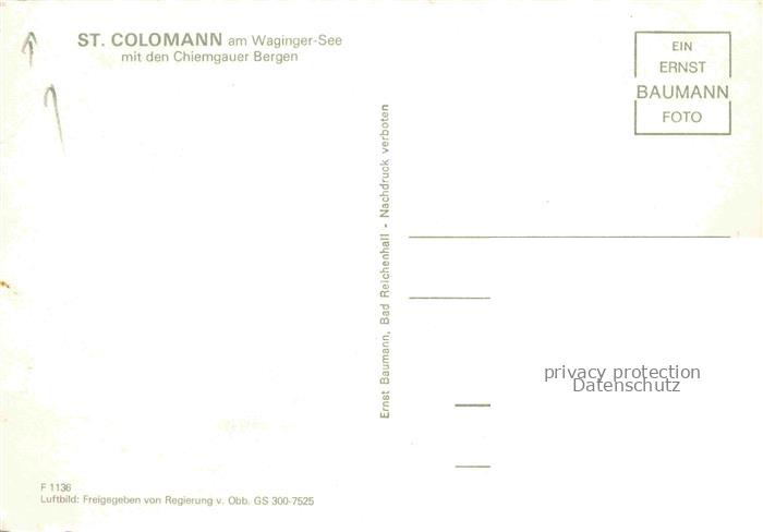 74141832 St Colomann Waginger-See Velburg Bayern Panorama Blick gegen Chiemgauer Berge postalisch nicht gelaufen Fliegeraufnahme Erhaltung siehe scans [FriedD77] KatCode: 11110009373167