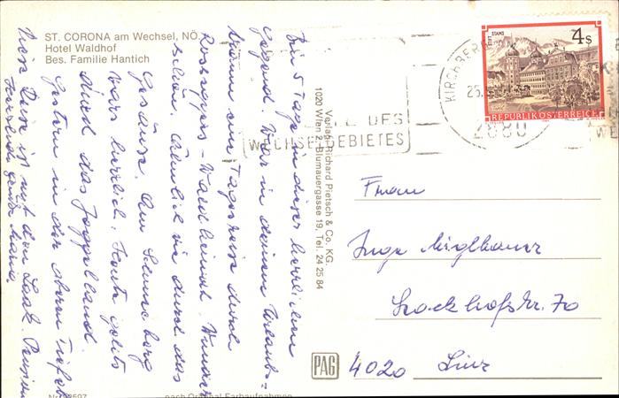 71431532 alte Postkarte St Corona Wechsel Hotel Waldhof postalisch gelaufen KatCode: 11390122031830