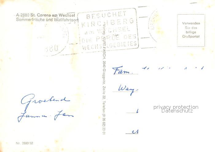 72985193 alte Postkarte St Corona Wechsel Kirchenpartie postalisch gelaufen Erhaltung siehe scans [LiesaD40] KatCode: 11390122031830