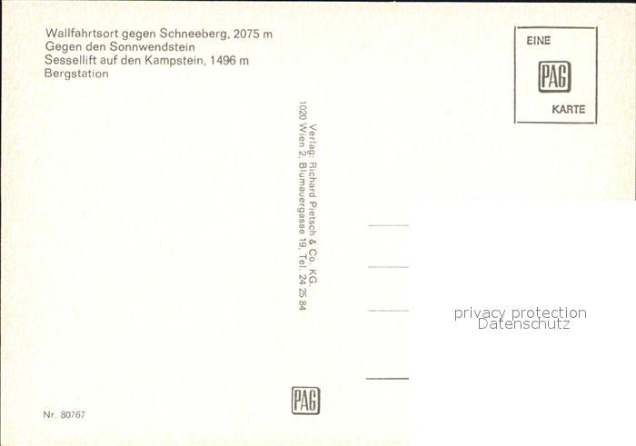 72590612 St Corona Wechsel Wallfahrtskirche Schneeberg Sonnwendstein Sessellift Kampstein Bergstation postalisch nicht gelaufen Erhaltung siehe scans [WerneD78] KatCode: 11390122031830