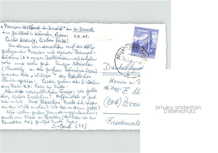 71941594 alte Postkarte St Daniel Gailtal Pension Heilbad St. Daniel postalisch gelaufen Erhaltung siehe scans KatCode: 11390212020305