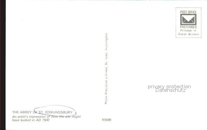 St Edmundsbury The Abbey an artist’s impression Abtei Kuenstlerkarte postalisch nicht gelaufen Erhaltung siehe scans