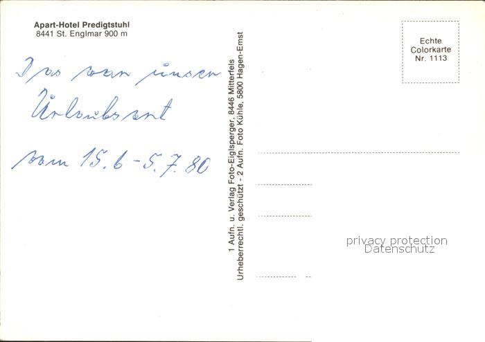 72105370 St Englmar Apart- Hotel Predigstuhl postalisch nicht gelaufen Erhaltung siehe scans KatCode: 11110009278184