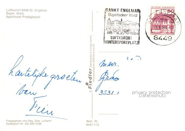 72941361 alte Postkarte St Englmar Aparthotel Predigtstuhl Fliegeraufnahme postalisch gelaufen Erhaltung siehe scans [PaolaD17] KatCode: 11110009278184