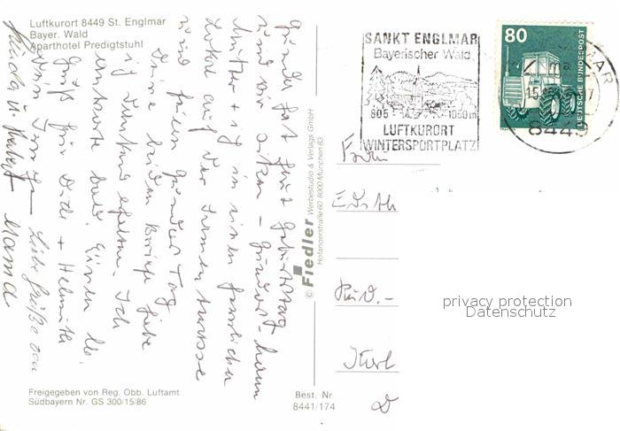 72616702 alte Postkarte St Englmar Aparthotel Predigtstuhl Fliegeraufnahme postalisch gelaufen Erhaltung siehe scans [WerneD78] KatCode: 11110009278184
