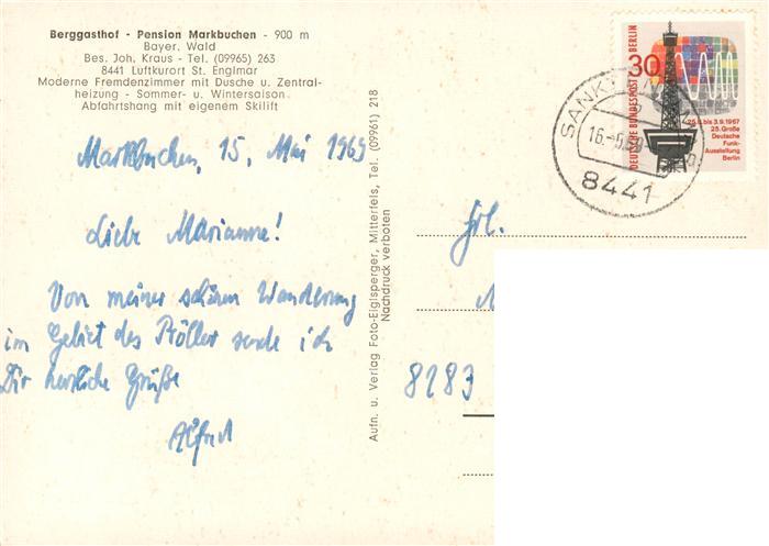 73887869 alte Postkarte St Englmar Berggasthof Pension Markbuchen postalisch gelaufen Erhaltung siehe scans [FriedD77] KatCode: 11110009278184
