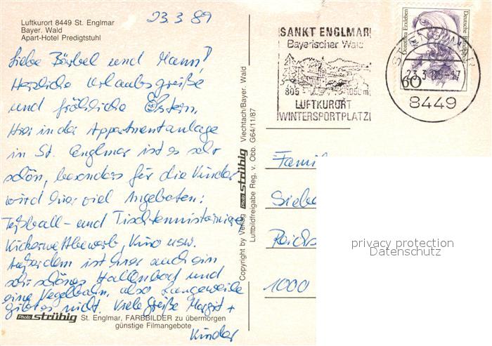 73005110 alte Postkarte St Englmar Fliegeraufnahme Apart Hotel Predigtstuhl postalisch gelaufen Erhaltung siehe scans [WerneD78] KatCode: 11110009278184