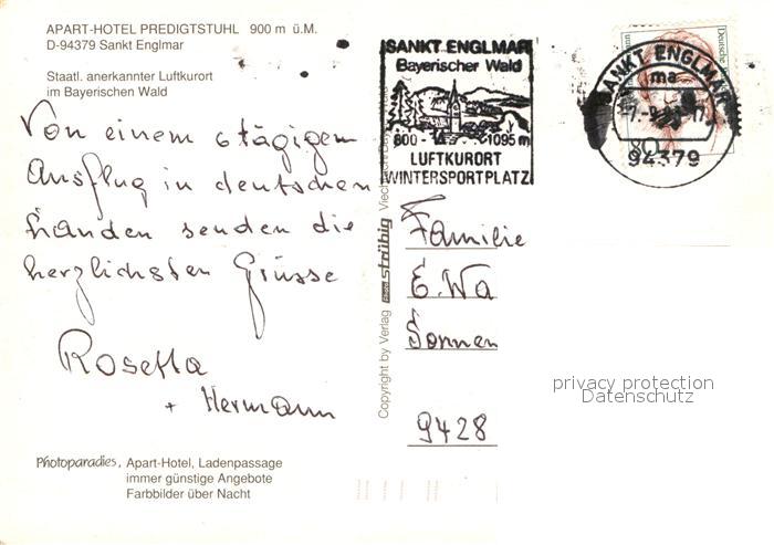 72960785 alte Postkarte St Englmar Fliegeraufnahme Apart-Hotel Predigtstuhl postalisch gelaufen Erhaltung siehe scans [LiesaD40] KatCode: 11110009278184