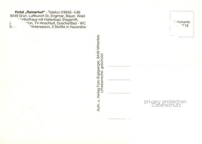 73864542 St Englmar Hotel Reinerhof Hallenbad postalisch nicht gelaufen Erhaltung siehe scans [WerneD78] KatCode: 11110009278184