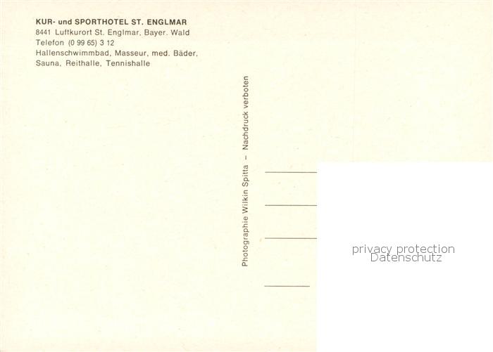 73768140 St Englmar Kur- und Sporthotel im Bayerischen Wald postalisch nicht gelaufen Erhaltung siehe scans [FriedD77] KatCode: 11110009278184