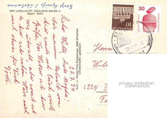 72741030 alte Postkarte St Englmar Panorama Luftkurort Bayerischer Wald postalisch gelaufen Erhaltung siehe scans [FriedD77] KatCode: 11110009278184