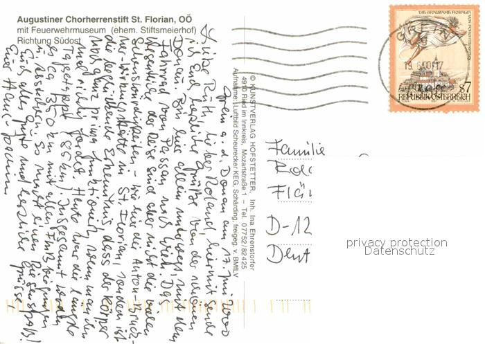 72842400 alte Postkarte St Florian Augustiner Chorherrenstift St. Florian Feuerwehrmuseum Fliegeraufnahme postalisch gelaufen Erhaltung siehe scans [PaolaD17] KatCode: 11390
