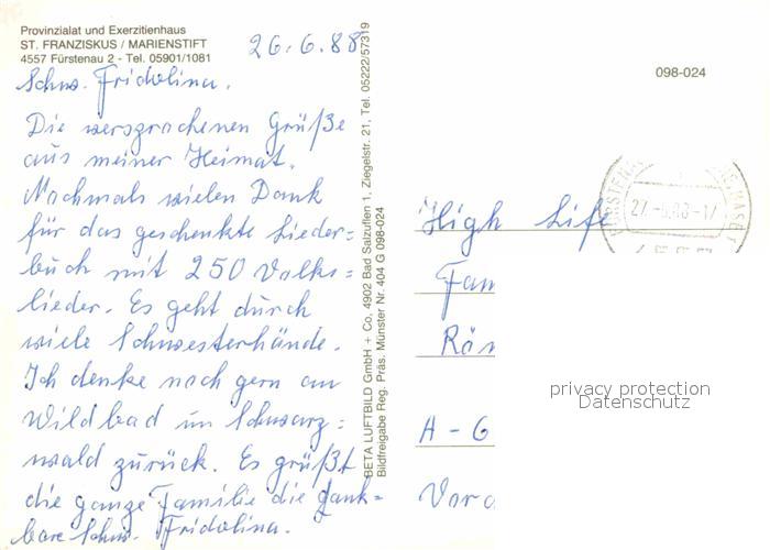 72904464 alte Postkarte St Franziskus Fliegeraufnahme Marienstift Provinzialat und Exerzitienhaus postalisch gelaufen Erhaltung siehe scans [LiesaD40] KatCode: 11110009771122