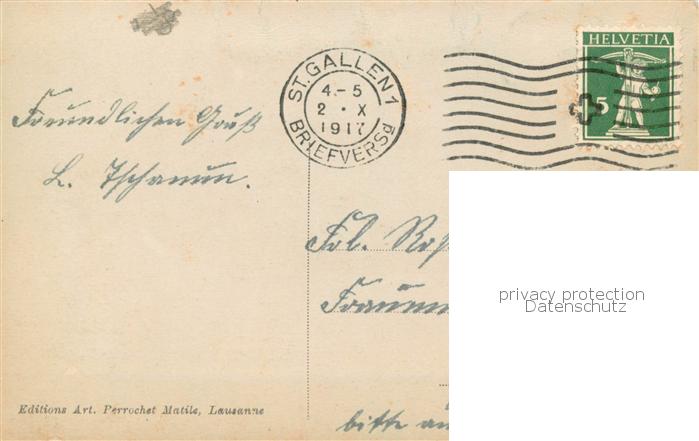 13750435 alte Postkarte St Gallen SG Boersenplatz Brunnen postalisch gelaufen Erhaltung siehe scans [FriedD77] KatCode: 11470190580766