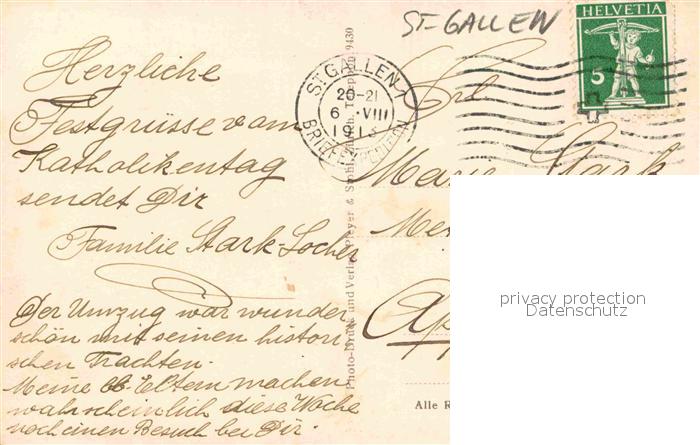 12736809 alte Postkarte St Gallen SG Christlicher Umzug postalisch gelaufen Erhaltung siehe scans [AndreD76] KatCode: 11470190580766