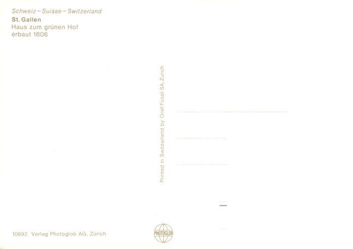 13880742 St Gallen SG Haus zum gruenen Hof 17. Jhdt. postalisch nicht gelaufen Erhaltung siehe scans [FriedD77] KatCode: 11470190580766