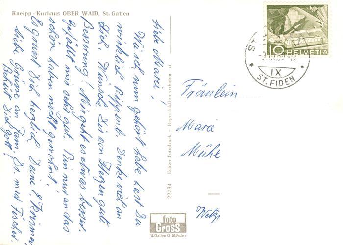 13874822 alte Postkarte St Gallen SG Kneipp Kurhaus Ober Waid postalisch gelaufen Erhaltung siehe scans [WerneD78] KatCode: 11470190580766
