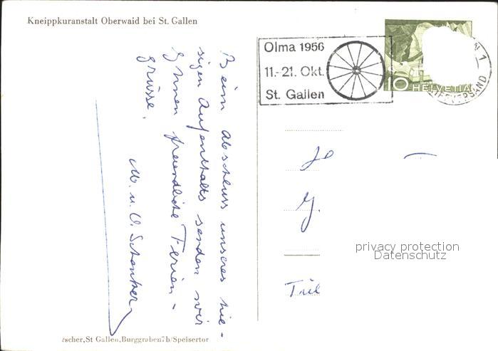 11837412 alte Postkarte St Gallen SG Kneippkuranstalt Oberwaid postalisch gelaufen Erhaltung siehe scans KatCode: 11470190580766