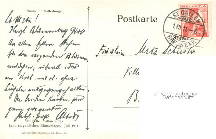 13770236 alte Postkarte St Gallen SG Offizielle Postkarte des kantonalen st. gallischen Blumentages Kuenstlerkarte postalisch gelaufen Erhaltung siehe scans [FriedD77] KatCode: 11470190580766