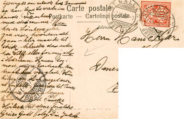 13908506 alte Postkarte St Gallen SG Panorama postalisch gelaufen Erhaltung siehe scans [FriedD77] KatCode: 11470190580766
