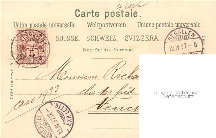 13218041 alte Postkarte St Gallen SG Panorama Kloster Museum postalisch gelaufen Erhaltung siehe scans [WerneD78] KatCode: 11470190580766