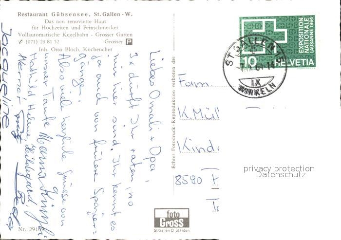 11629502 alte Postkarte St Gallen SG Restaurant Guebsensee postalisch gelaufen Erhaltung siehe scans KatCode: 11470190580766