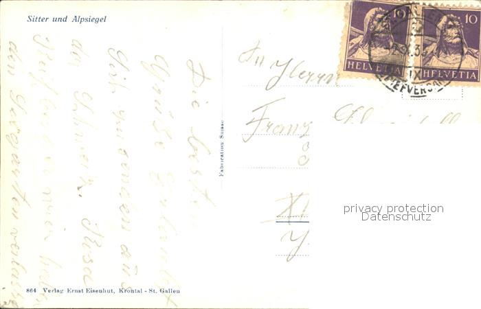12029816 alte Postkarte St Gallen SG Sitter und Alpsiegel im Alpstein postalisch gelaufen Erhaltung siehe scans KatCode: 11470190580766