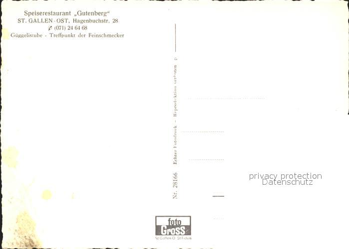 11629654 St Gallen SG Speiserestaurant Gutenberg Gartenterrasse postalisch nicht gelaufen Erhaltung siehe scans KatCode: 11470190580766