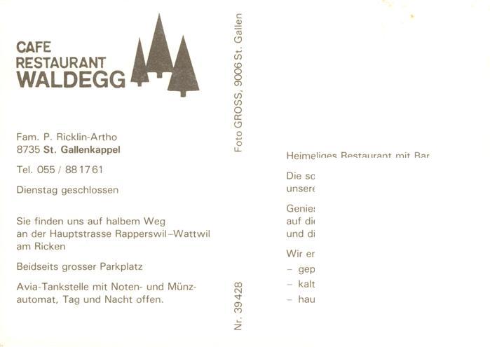 13876404 St Gallenkappel Cafe Restaurant Waldegg Gaststube Terrasse postalisch nicht gelaufen Werbekarte (keine Postkarte) Erhaltung siehe scans [WerneD78] KatCode: 11470190570728