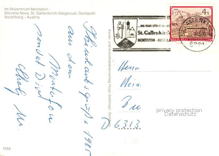 73361317 alte Postkarte St Gallenkirch Vorarlberg Skizentrum Montafon Silvretta Nova Bergdorf Kirche Tiefschneefahren postalisch gelaufen Erhaltung siehe scans [FriedD77] KatCode: 11390341080120