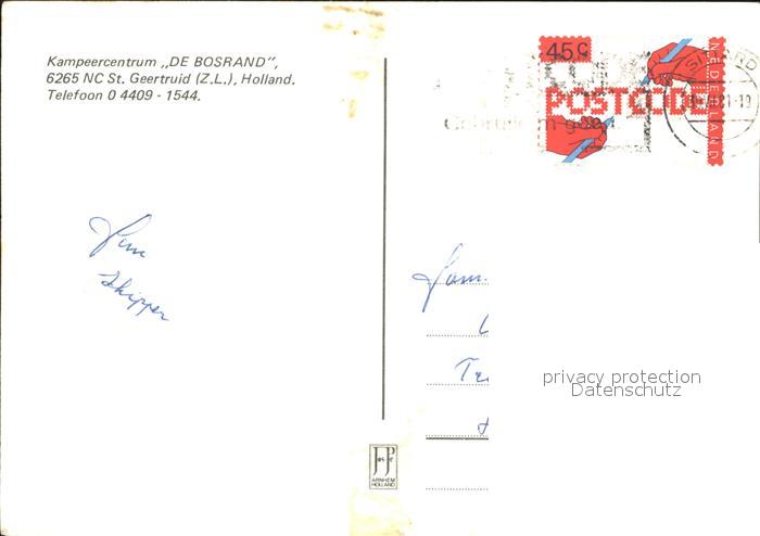 old postcard St Geertruid Camping De Bosrand postalisch gelaufen Erhaltung siehe scans