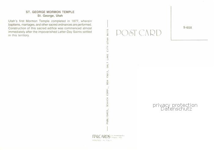 72901908 St George Utah Saint George Mormon Temple postalisch nicht gelaufen Erhaltung siehe scans [AndreD76] KatCode: 14140470000000