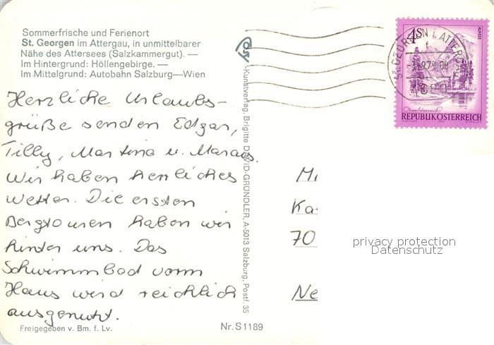 13339177 alte Postkarte St Georgen Attergau Fliegeraufnahme mit Hoellengebirge postalisch gelaufen Erhaltung siehe scans [WerneD78] KatCode: 11390315041746
