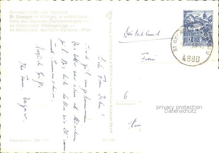 72432574 alte Postkarte St Georgen Attergau Hoellengebirge postalisch gelaufen Erhaltung siehe scans KatCode: 11390315041746