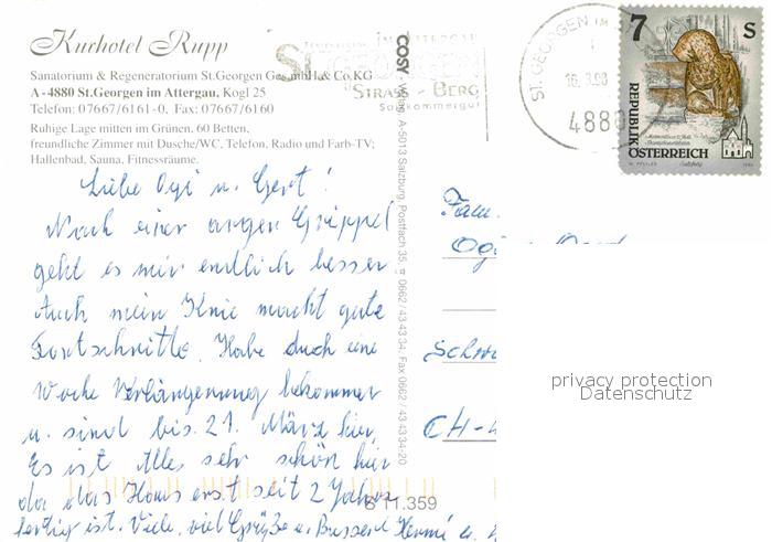 72638192 alte Postkarte St Georgen Attergau Kurhotel Rupp Sanatorium Regeneration Gymnastik Terrasse Zimmer postalisch gelaufen Erhaltung siehe scans [WerneD78] KatCode: 11390315041746