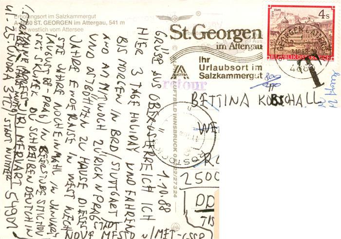 alte Postkarte St Georgen Attergau Panorama Attersee Alpen postalisch gelaufen Fliegeraufnahme Erhaltung siehe scans [FriedD77]