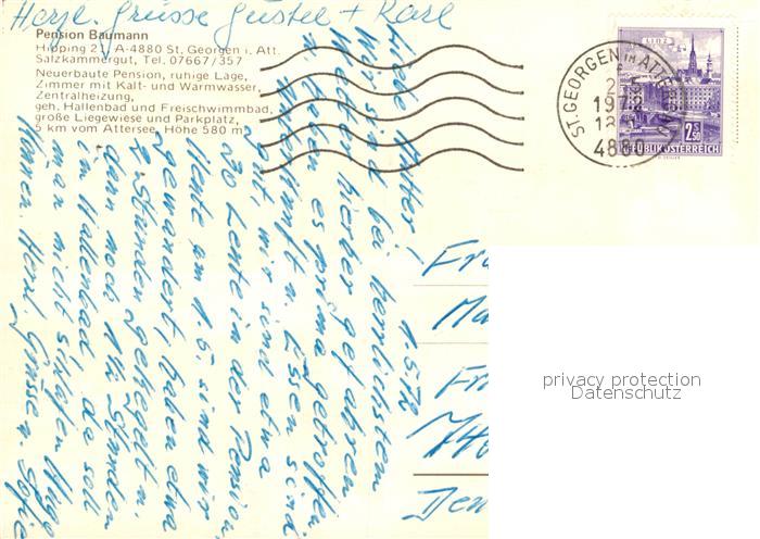 13317036 alte Postkarte St Georgen Attergau Pension Baumann Zimmer Gastraum Bar postalisch gelaufen Erhaltung siehe scans [WerneD78] KatCode: 11390315041746