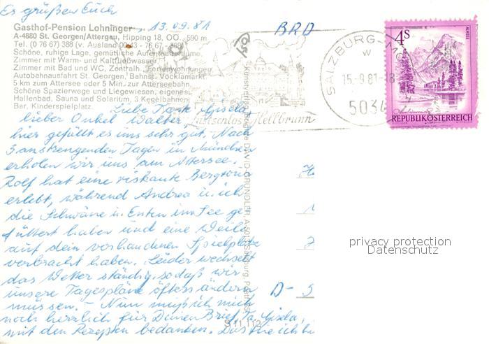 12983781 alte Postkarte St Georgen Attergau Pension Lohninger Bar Hallenbad Teilansicht Sauna postalisch gelaufen Erhaltung siehe scans [AndreD76] KatCode: 11390315041746