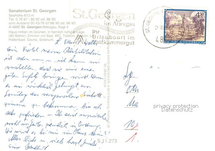 73363076 alte Postkarte St Georgen Attergau Sanatorium postalisch gelaufen Erhaltung siehe scans [FriedD77] KatCode: 11390315041746